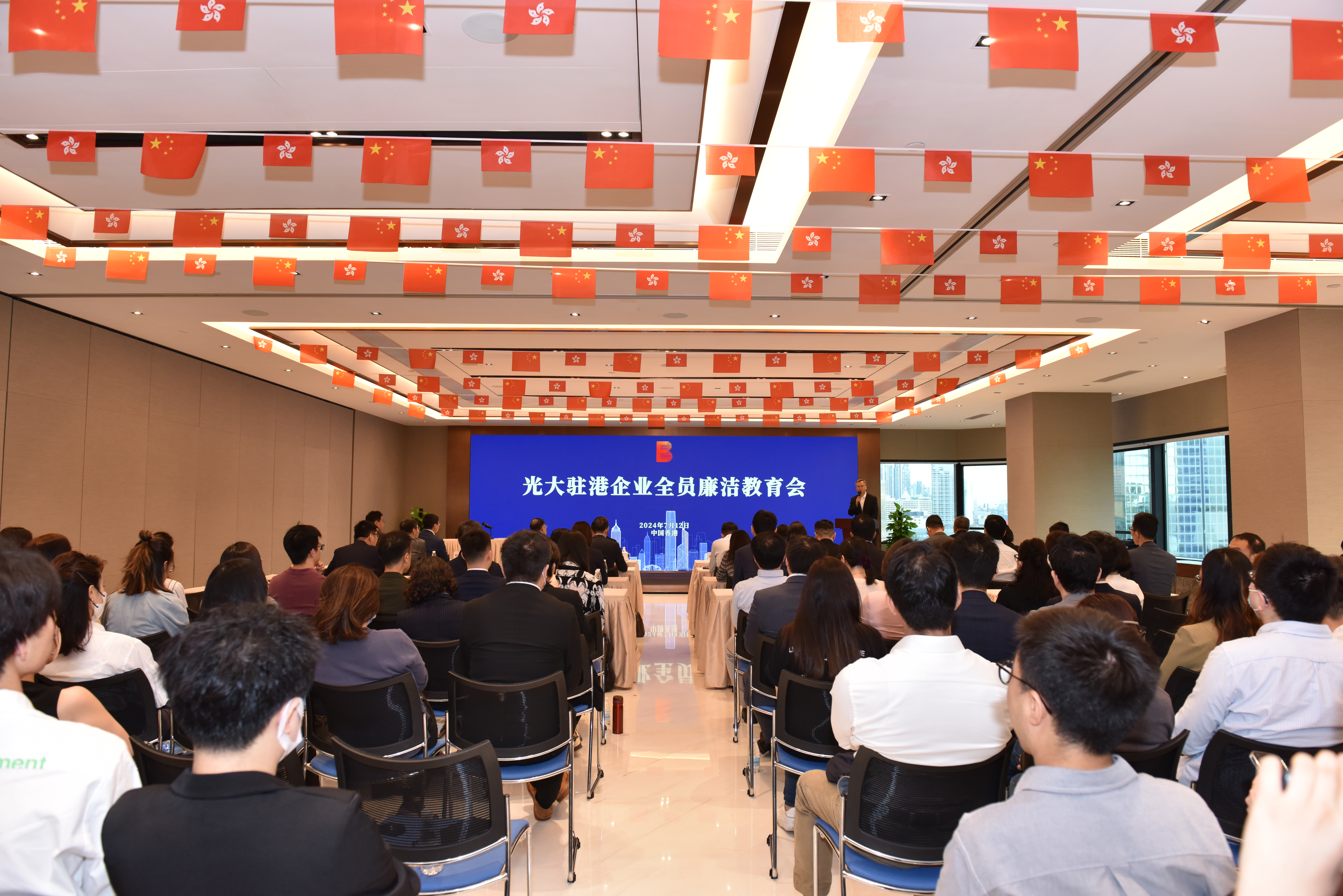 于法昌表示,香港廉政公署是香港社會發展的基石,自成立以來始終以肅貪倡廉為目標,不懼不偏履行肅貪倡廉使命,獲得香港市民的廣泛堅定支持,保障了香港廉潔、高效、透明的政府運作機制及良好的營商環境,使香港成為世界最廉潔的地區之一。舉辦這次全員廉潔教育大會,旨在貫徹落實習近平主席關于“一帶一路”廉潔建設作出的一系列重要論述,切實強化光大駐港企業全體干部員工的廉潔意識、合規意識、紅線意識,嚴格遵守道德準則和法律法規,塑造光大良好社會形象,為企業高質量發展奠定堅實基礎。